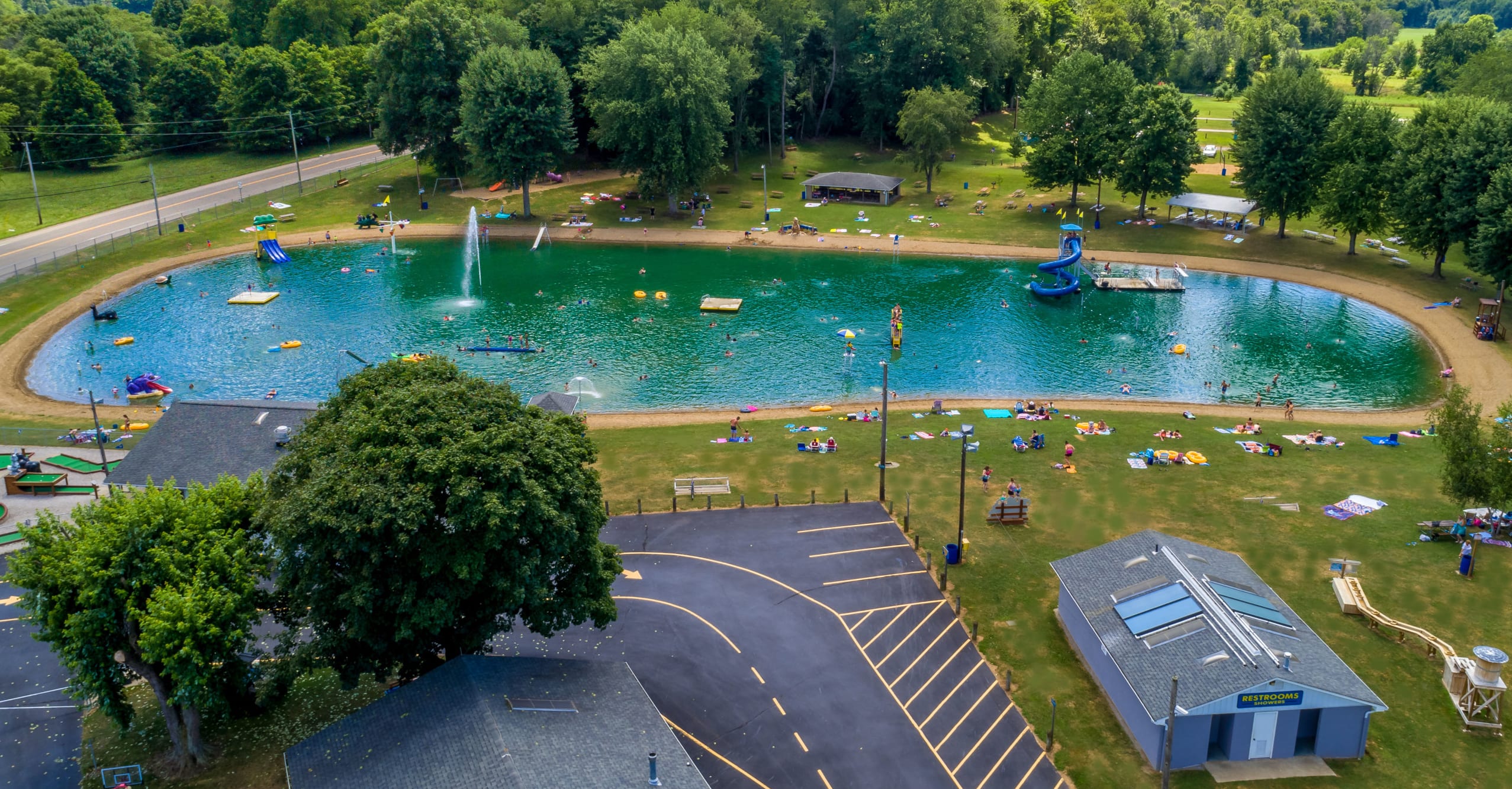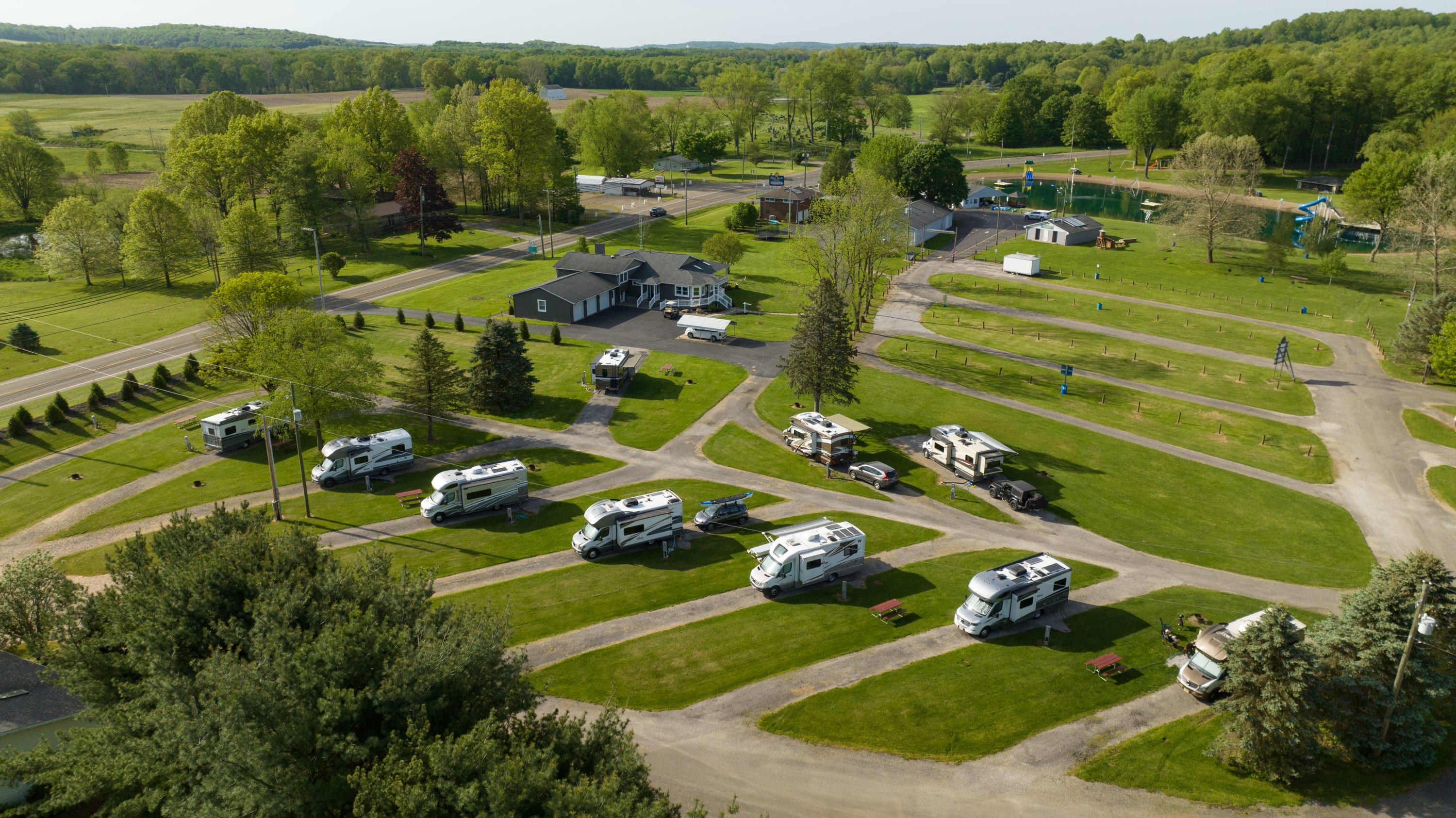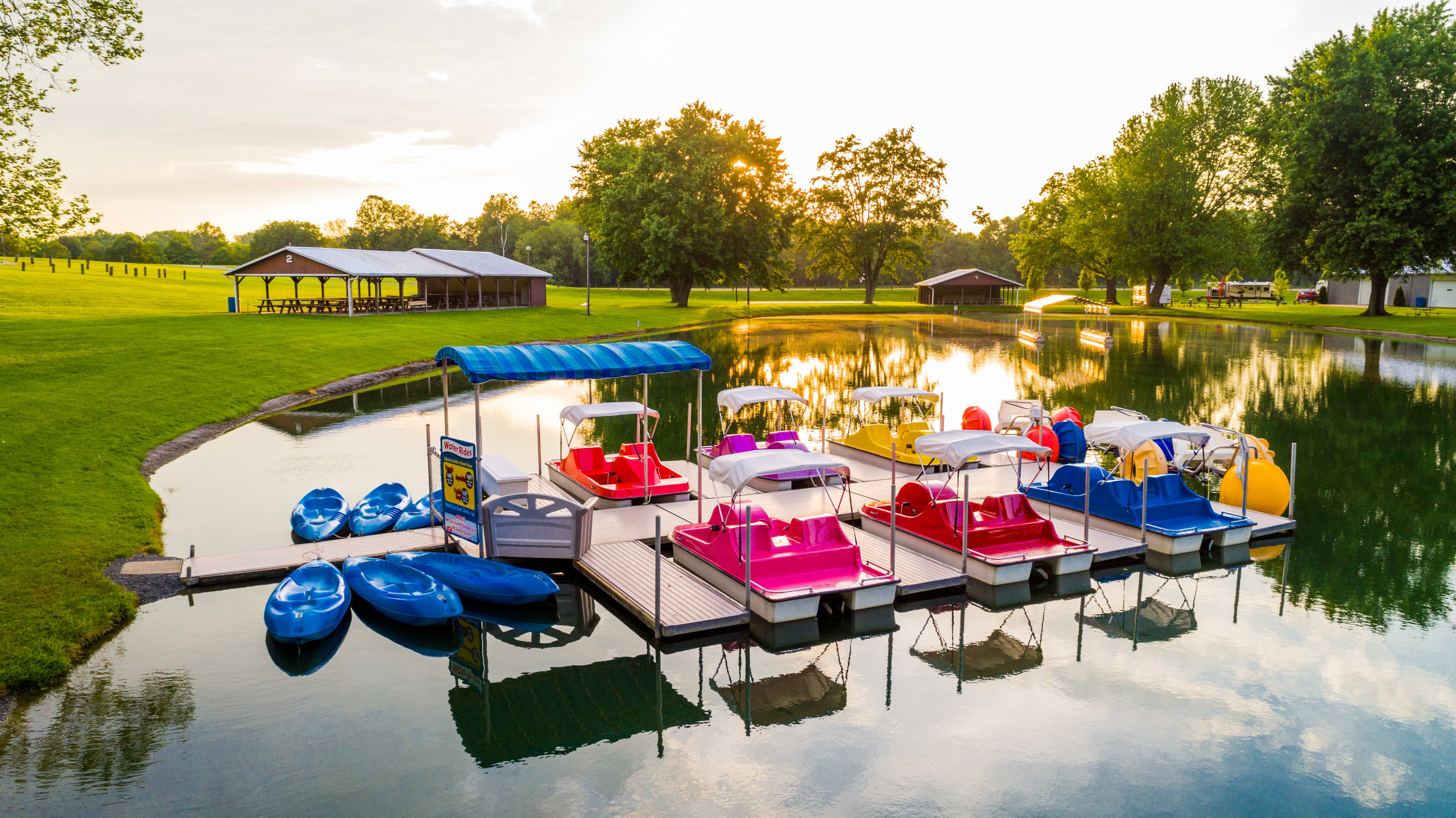 Family & Senior friendly park near Amish Country & The Pro-Football HOF. Treated swimming lake with slides, log rolls and fountains, water boat rides, gem mine, mini-golf. Bicycles welcomed. Spacious campsites available, easy access, full hook-ups or water/electric, chipped & sealed roads. Wilderness walking path, pet friendly campground; WiFi. ~John 3:16