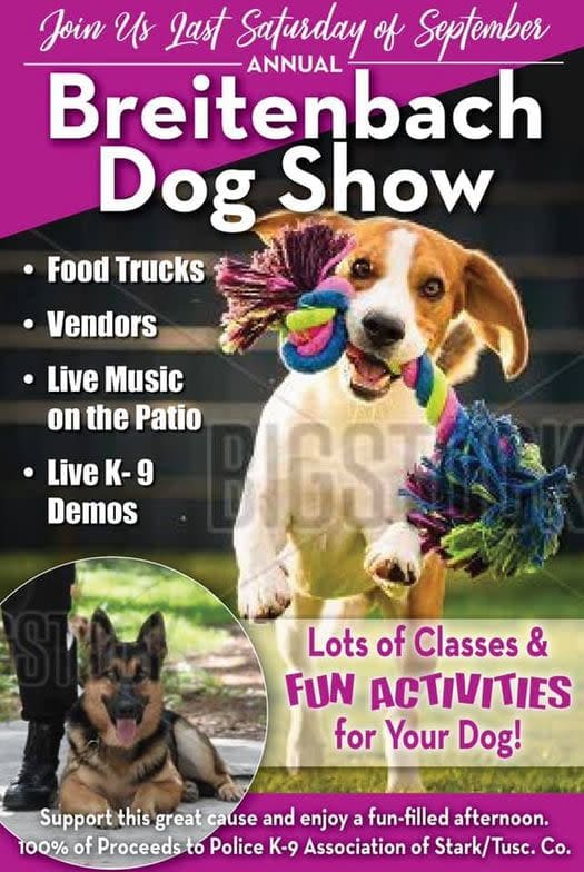 Gather at Breitenbach Winery on Saturday, September 28, 2024 for the Breitenbach Dog Show! Attendees will enjoy contests for your dog, merchandise sales from vendors, 50/50, music by Jared Barton, and food and beverages for purchase! Bring your dog and register them for the dog show contests! 🤩 Contest categories include: ⤵️ • Loveliest Lady * Most Fabulous Fella * Most Original Costume * Best Heinz 57 * Sweetest Golden Oldie (over 9) * Best Sausage Catcher * Best Vocal Performance * Shake Your Paw Thing * Best Designer Dog * Puppy Love (under 2) * Best Young Trainer (handler under 18) * Egg and Spoon Schedule of events: ⤵️ • 2:00PM - Registration begins • 3:00PM - Dog contests begin 🔵 Dog contest registration will take place at the event. NO prior registration required. Pricing is $5 🔵 100% of event proceeds benefit nearly 50 active and retired K-9’s through the Police K-9 Association 501(c)(3) nonprofit and charitable organization.Images