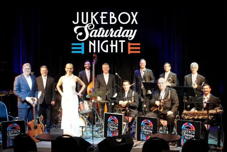ABOUT JUKEBOX SATURDAY NIGHT: JSN is a musical review of the great Big Bands during the 1930’s, ’40’s and ’50’s. Performances celebrate America’s Swing Era, featuring the greatest hits recorded by Glenn Miller, Duke Ellington, Tommy and Jimmy Dorsey, Count Basie, Benny Goodman, Jimmie Lunceford, Artie Shaw, Harry James, Les Brown, Woody Herman and many others. Featured performers of this ensemble are veterans from some of the name bands as well. This fun-filled production for all ages captures the exciting sounds of great melodies and lyrics, performed by an energetic group of instrumentalists and vocalists who will keep you moving in your seats, tapping your toes and clapping your hands.Images