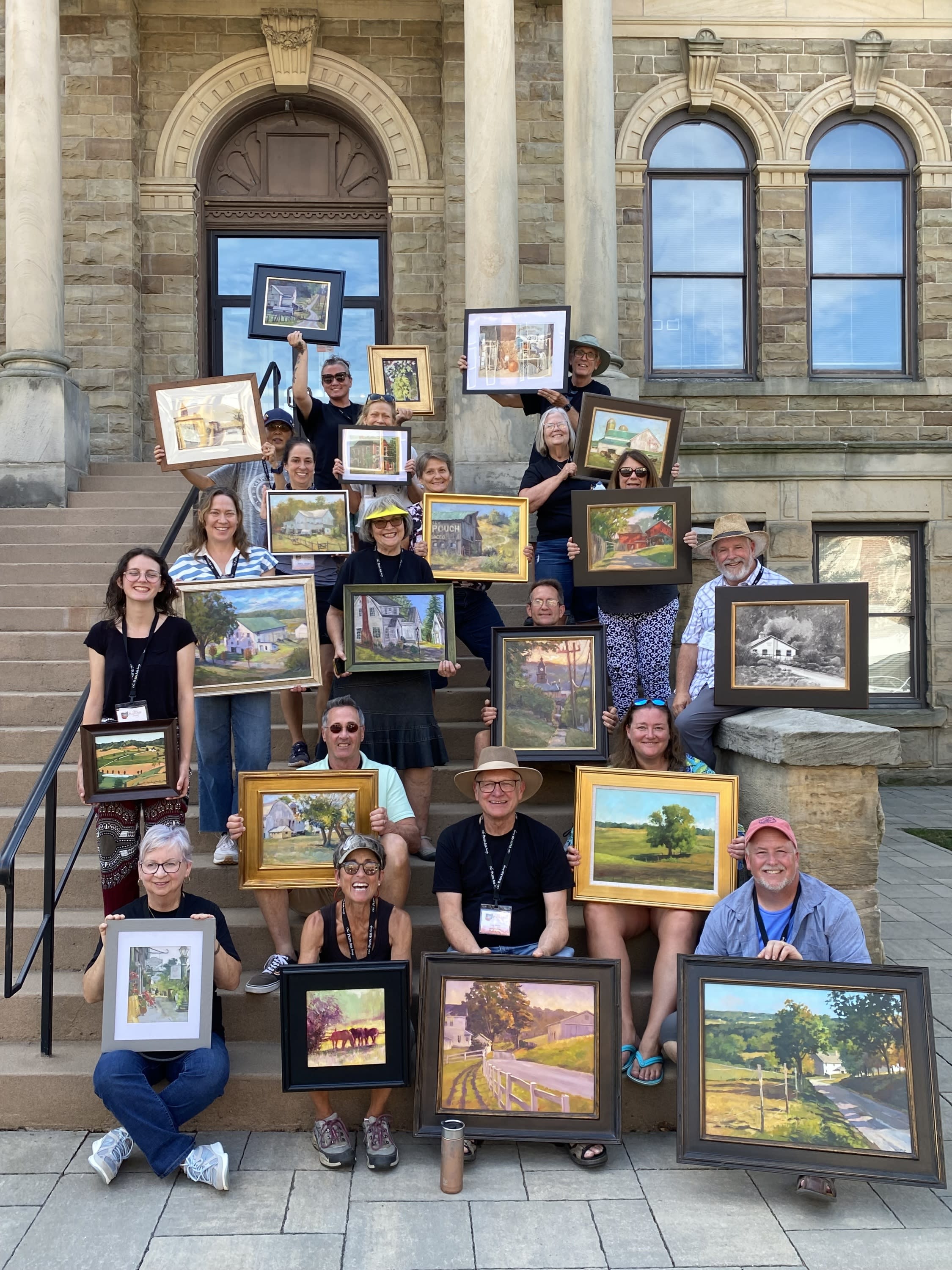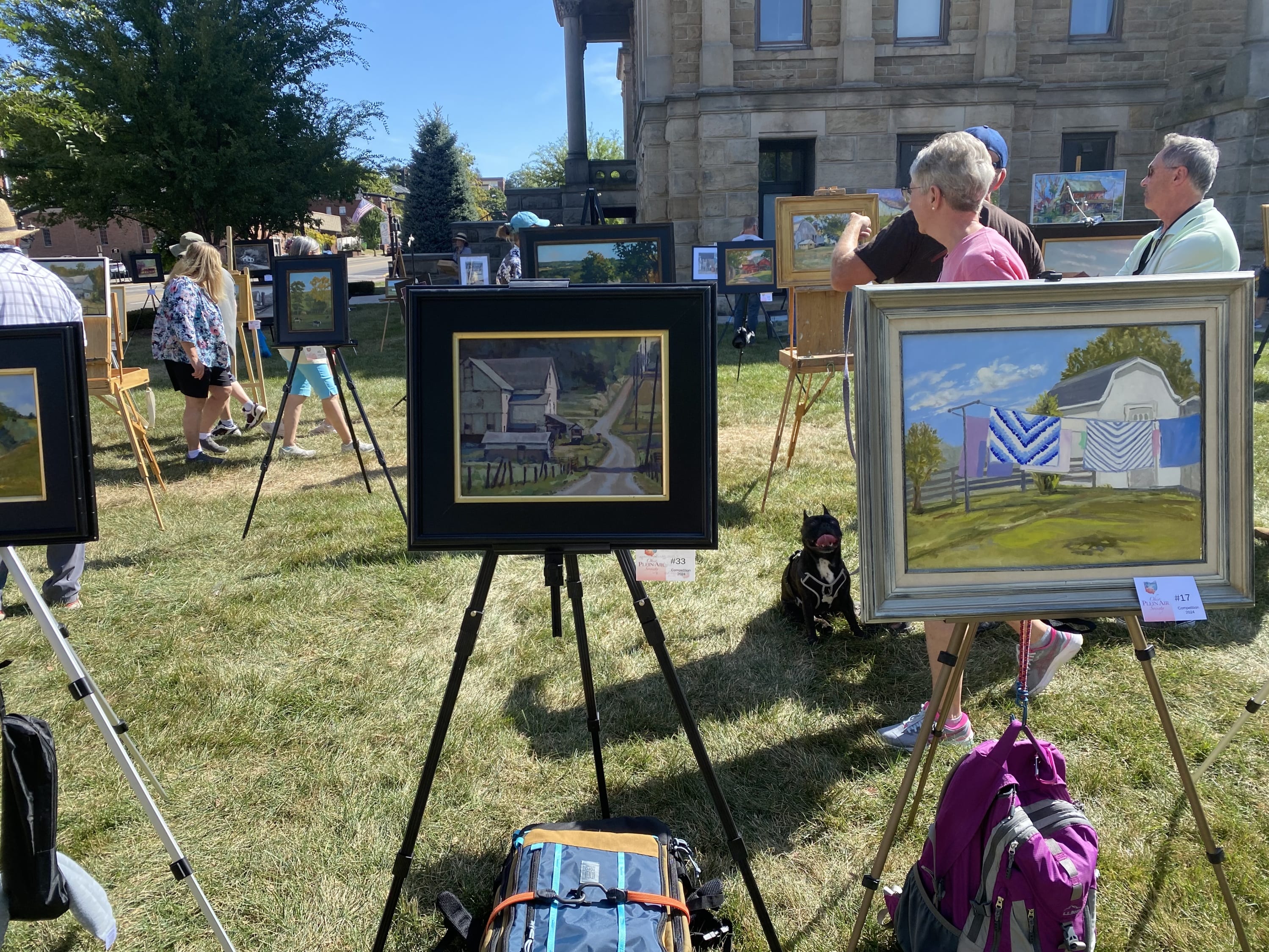 This fall 2025 we will hold our competition in Millersburg and Homes County. The artists have their painting surfaces stamped on the back and they must create paintings within the boundaries of Holmes County. We will be using Hotel Millersburg as our home base and (weather permitting) the final judging and awards ceremony on the courthouse lawn. Last year, 2024, we were in Millersburg and there were over 60 artists competing. We will also offer a youth category for local children. The artists are competing for over $7000.00 in prizes. The event starts Thursday, September 18th at 4pm and ends on Sunday, September 21'st with the paintings displayed and awards announced at 1:00 pm. It is a chance to see some of the finest artists from the state of Ohio gathered in one place.Images
