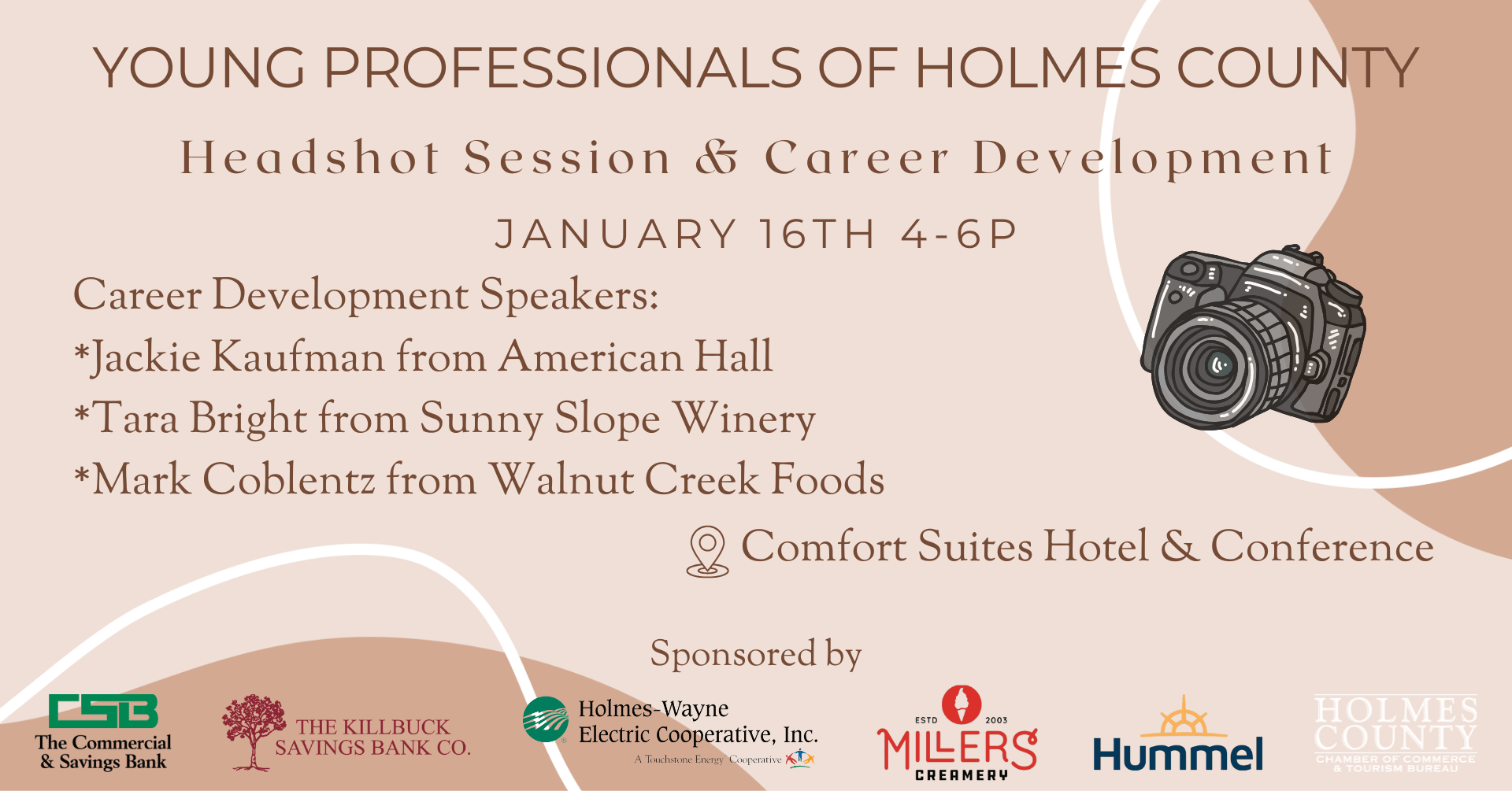 Join us for a headshot session and hear from three speakers about career development. Jackie Kaufman from American Hall Venue, Tara Bright from Sunny Slope Winery, and Mark Coblentz from Walnut Creek Foods will give us some insight into how they got to where they are today. Don’t miss this opportunity to learn from their experiences!