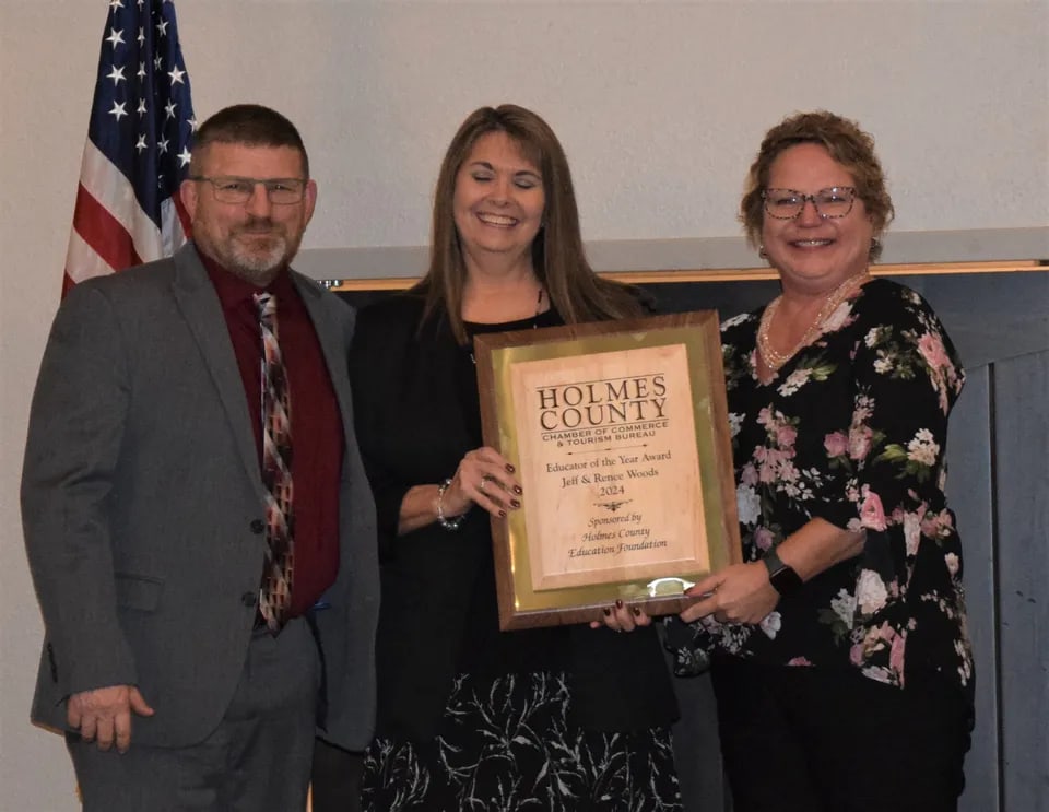 Jeff and Renee Woods expressed their gratitude for their award. About the principals at Millersburg Elementary School and West Holmes Middle School, presenter Shasta Mast noted how lucky some students are to have gone from the guidance of Renee Woods in elementary school to Jeff Woods in middle school.
